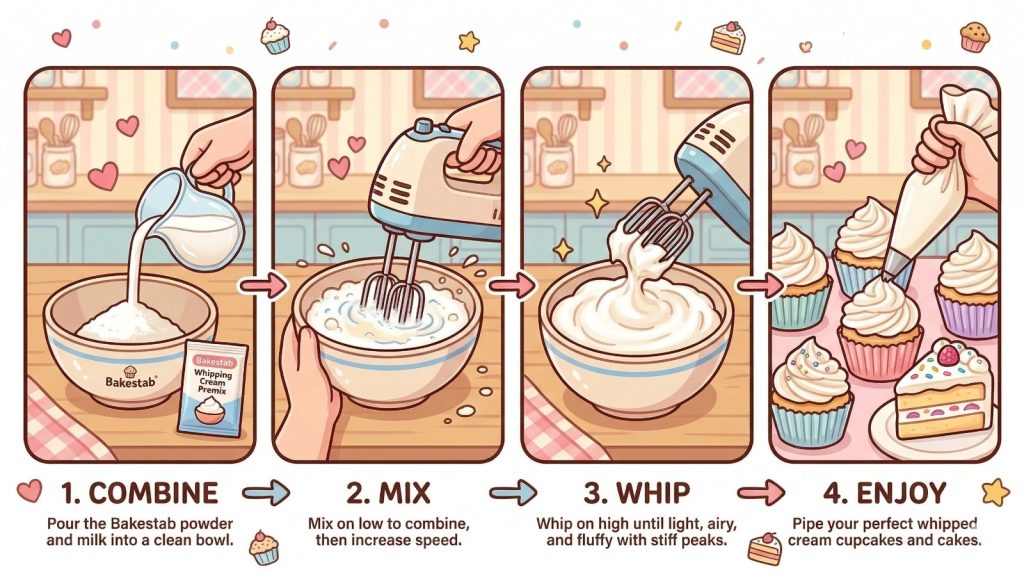 • Our non-dairy whipping cream is widely used across aerated dessert applications, including cakes, pastries, mousses, toppings, fillings, and decorative applications. It offers consistent performance, superior stability, and excellent hold, ensuring that whipped products maintain their structure and visual appeal for extended periods.